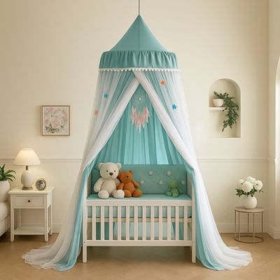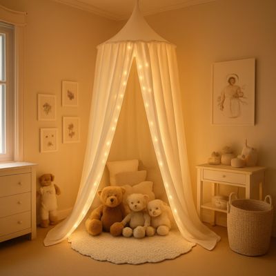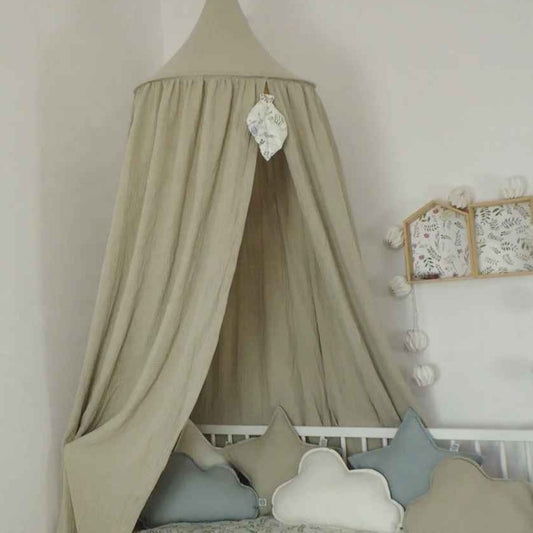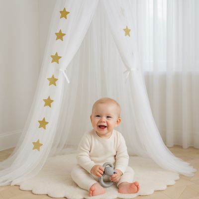 Notre collection de ciel de lit pour bébé allie fonctionnalité et esthétique. Chaque modèle est conçu avec des matériaux doux et soyeux qui diffusent délicatement la lumière, créant ainsi un espace intime et rassurant pour votre petit.